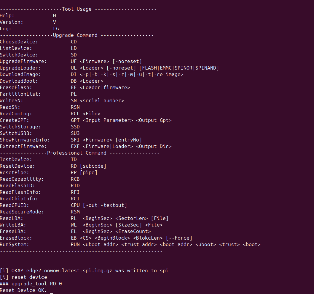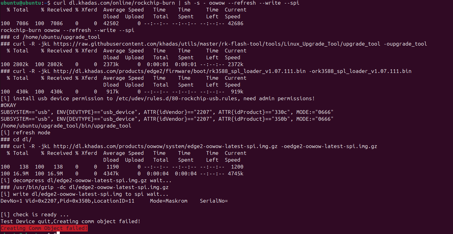 curl dl.khadas.com/online/rockchip-burn | sh -s - oowow --refresh --write --spi
