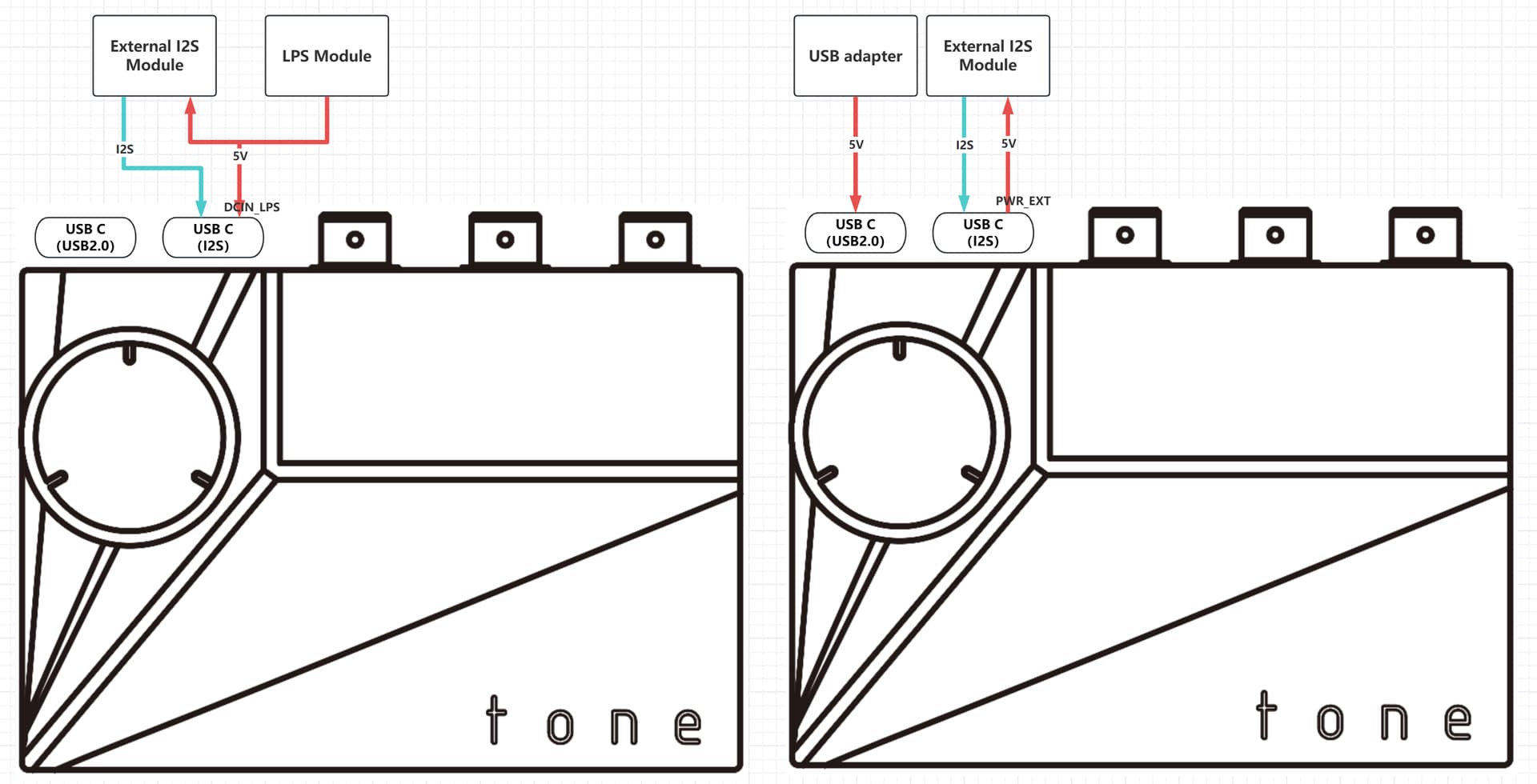 2.Yes,external power can supply for your module and Tone2 Pro simultaneously,it depends on the current of the external power. If DCIN_LPS pins have power input, USB-C(USB) input is optional.