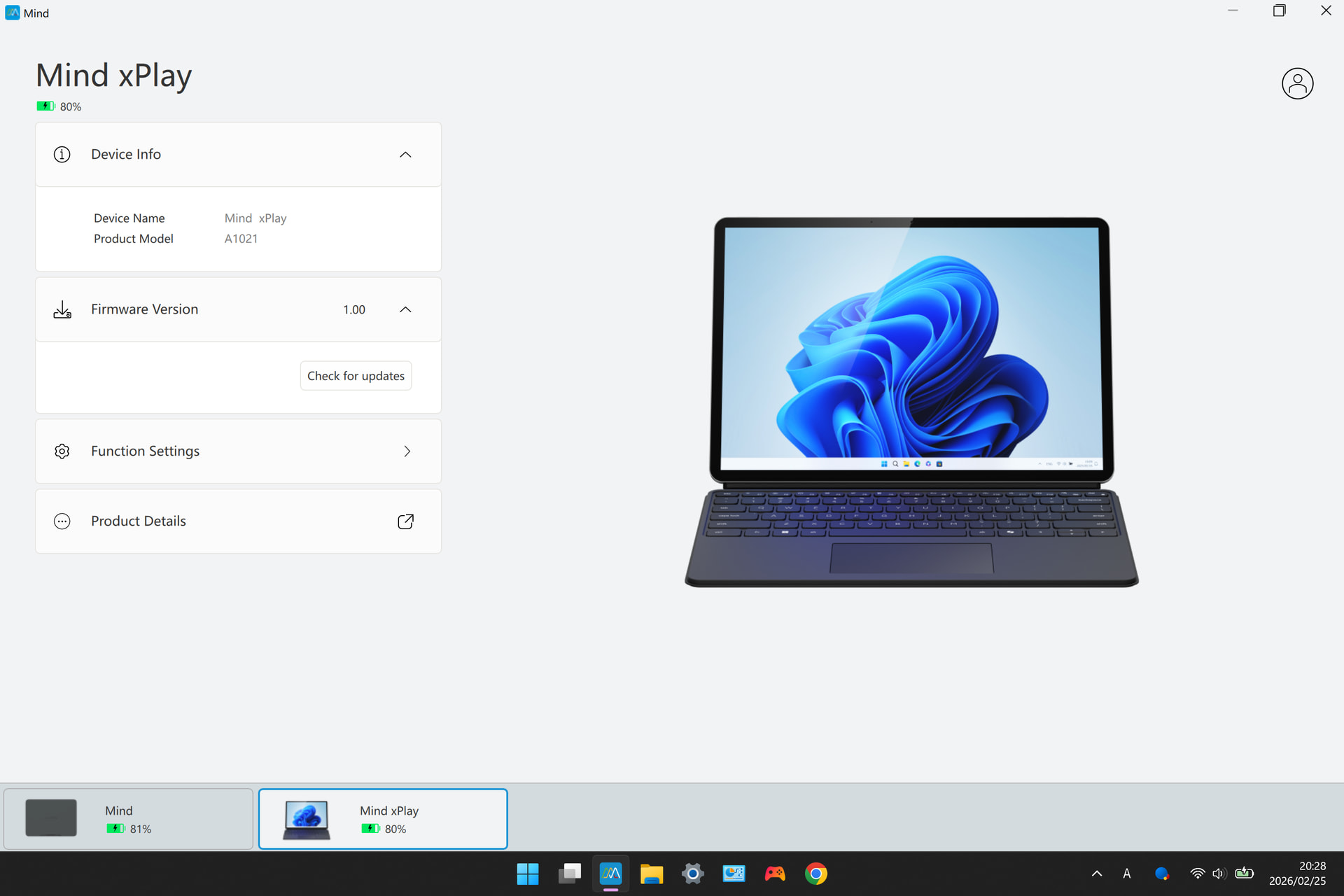There is no battery status visible within Windows. The Mind App shows the xPlay battery level stuck at 80% at all times with no change, regardless of actual charge state. For additional context: the Mind’s battery charge limit is set to 80% in the Mind App, and this Mind unit is normally used with Mind Graphics (RTX 4060 Ti 8GB) via Mind Link. As a result of no accurate status being shown, there is no warning before the battery runs out, causing a sudden and unexpected shutdown.