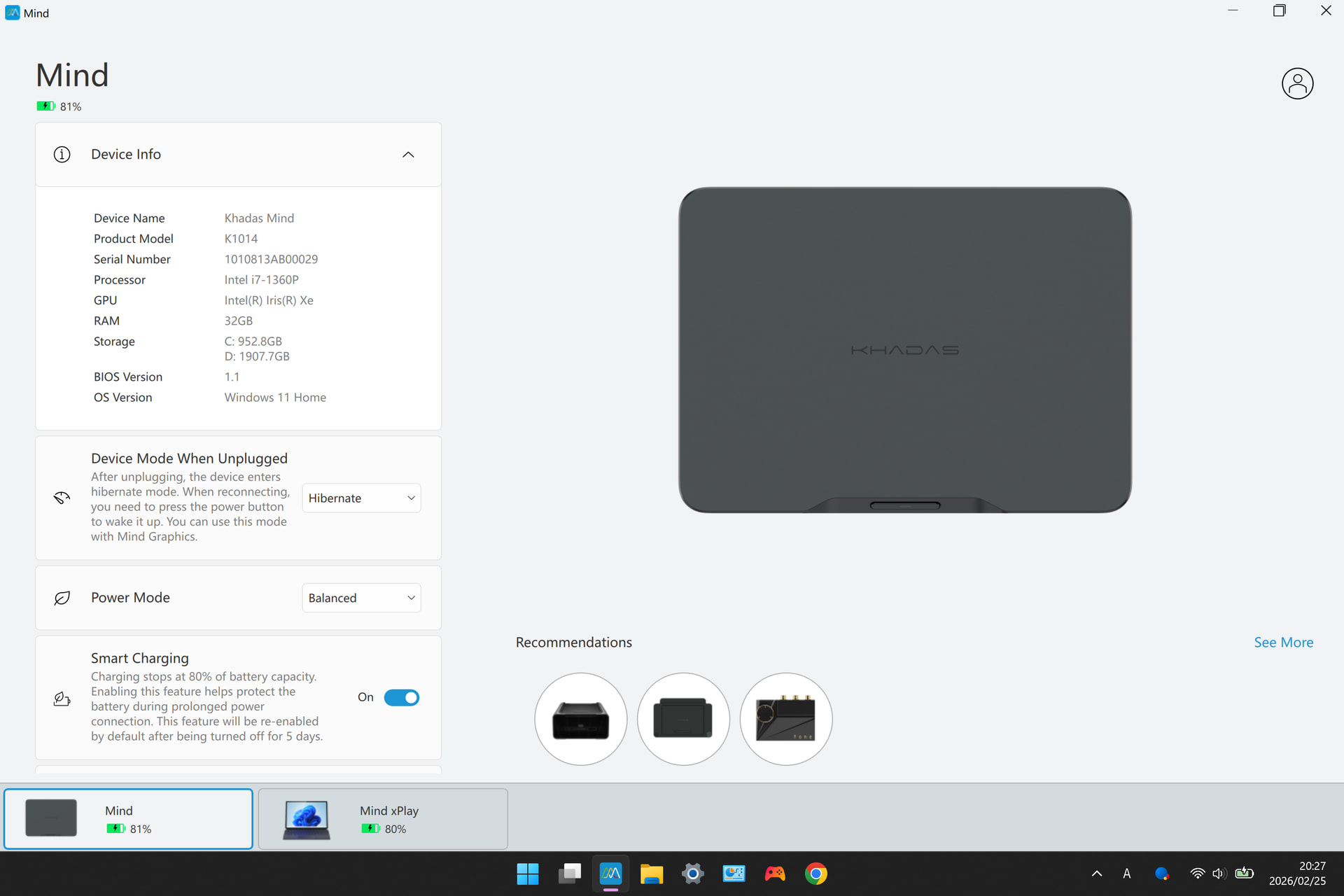 The Mind unit has a 2TB M.2 2230 SSD installed in the expansion slot (purchased from the Khadas official shop).