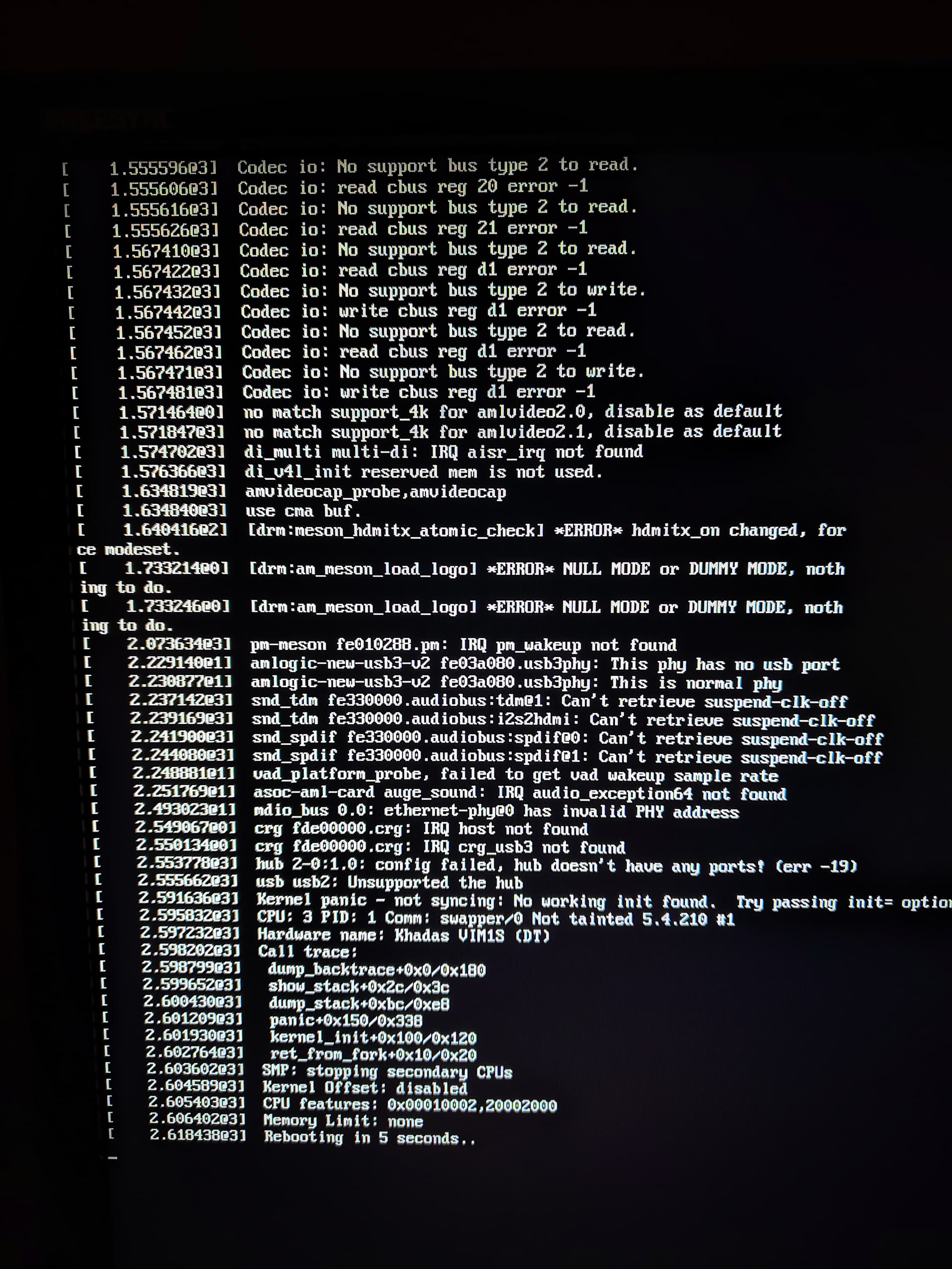 it does the same if I download the VIM1S image from github (The specific Kadas vim1s one that’s mentioned there) and extract it to the EMMC