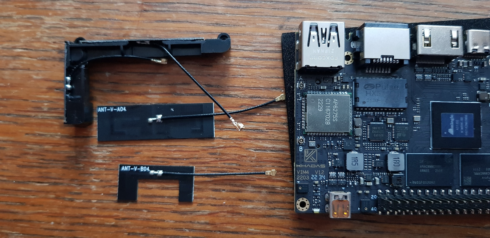 I have a VIM4 v12 board, which comes with the ANT-V-A04 and ANT-V-B04 antennas. Both the board and the antennas have MHF4 connectors.